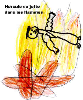 Mais il décide de mourir à son tour. Il allume du feu et se jette dedans. Il disparaît pour toujours. |