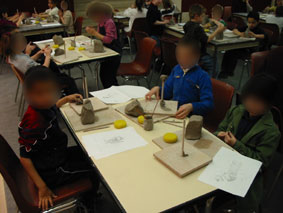 Conseils : il y a des élèves qui ont commencé par les pieds, ils ont dû tout refaire ! Si on ne met pas assez de terre, la sculpture risque de se casser, parce qu’elle sera trop fragile.